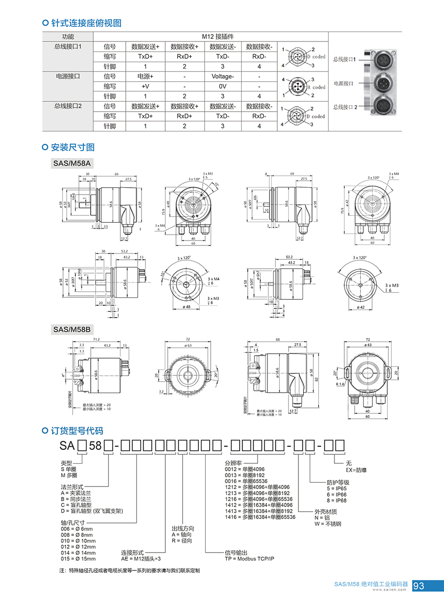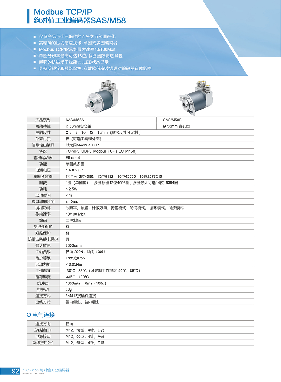 Modbus TCP/IP絕對(duì)值工業(yè)編碼器SAS/M58